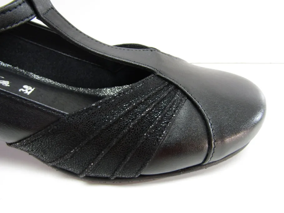 Kauniit nahkaiset Chantana avokkaat sopivat niin tanssi- kuin juhlakengiksikin. Mustissa avokkaissa hohtavan musta laskoskoriste jalkapydän molemmin puolin. Nilkan yli säädettävä siro nilkkaremmi, jossa soljen alla kuminahavenyke. Kengissä on pehmustettu sisäpohja ja pehmeä tekstiilivuori. Chantana kengät ovat todella miellyttävät jalasssa. Kannan korkeus noin 3,5 cm.
