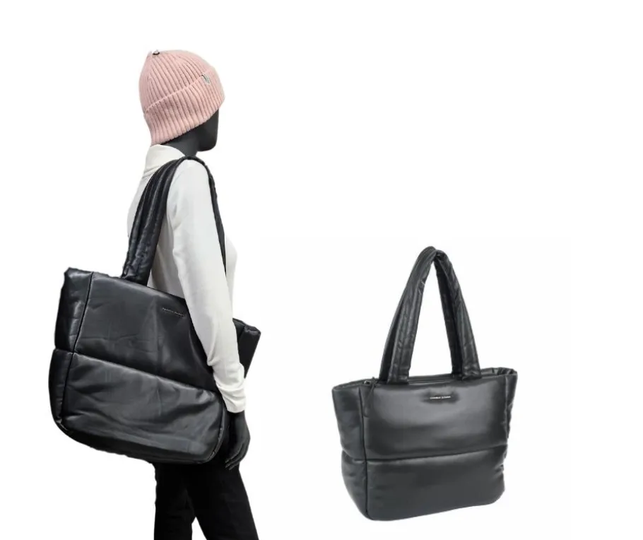 Daniele Donati 01.624.00 laukku on valmistettu pehmeästä keinonahasta, joka tuntuu miellyttävältä. Mustan laukun pinnassa on näyttävät tikkaukset, jotka tuovat laukkuun eleganttia ilmettä. Materiaali on kevyesti toppamaista.