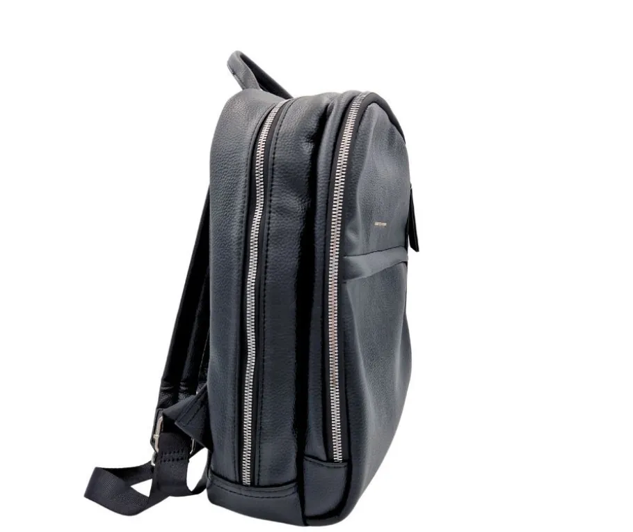 Tyylikäs Daniele Donati 01.519 reppu on valmistettu synteettisestä nahasta, ja sen sisävuori on pehmeää tekstiiliä. Mustan repun hopeanväriset metalliyksityiskohdat luovat elegantin ilmeen, joka sopii niin työpäivään kuin vapaa-aikaankin.