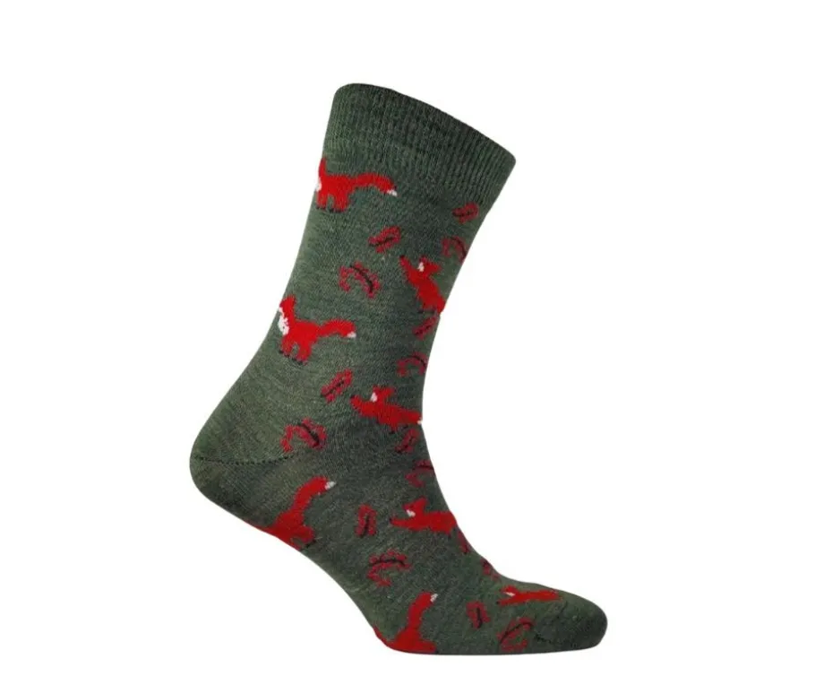 Kansainvälisesti tunnustettu standardi takaa, että sukat eivät sisällä terveydelle vaarallisia aineita, ja voit olla huoletta, kun lapset pukevat nämä suloiset vihreät sukat, joissa on leikkisät punaruskeat kettukuosit.