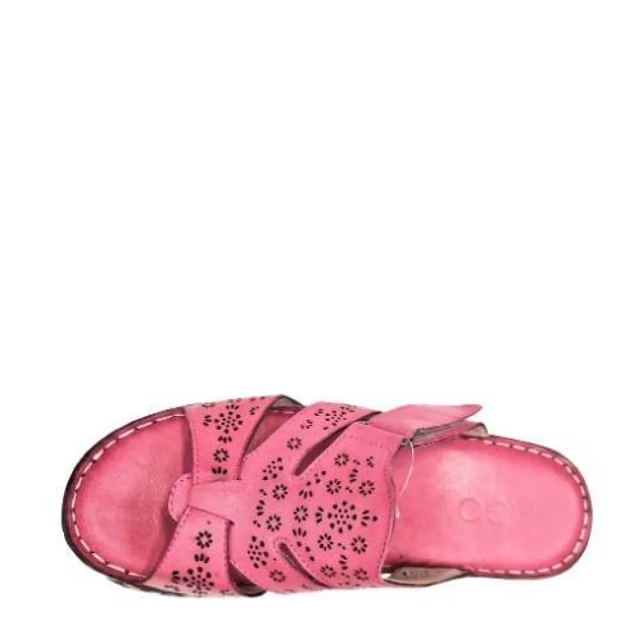 Nahkaiset pistokkaat ihanan pehmeällä sisäpohjalla. Pirteän fuksianväriset kesäkengät, soveltuu myös sisäkäyttöön.