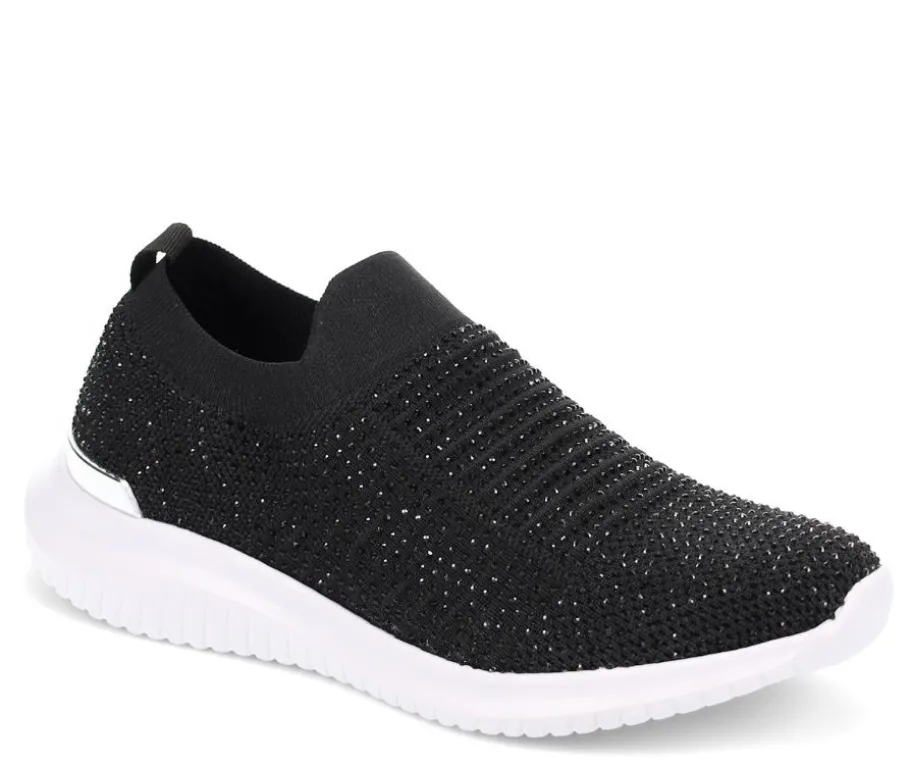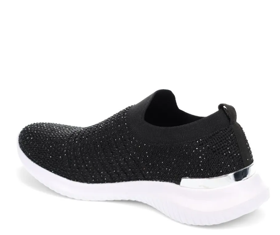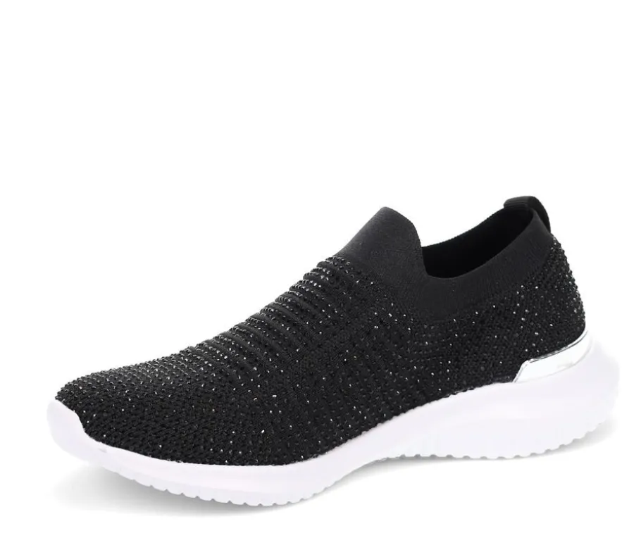 Migant A923-129 kangaskengät tuovat askeleisiin ripauksen hohtoa! Musta tekstiilipäällinen saa näyttävän lisänsä kimalteesta ja kantapään hopeisesta raidasta. Tyylikäs ulkonäkö yhdistyy vaivattomaan mukavuuteen, joten kengät sopivat täydellisesti niin arjen menoihin kuin rennompaan juhlapukeutumiseen.