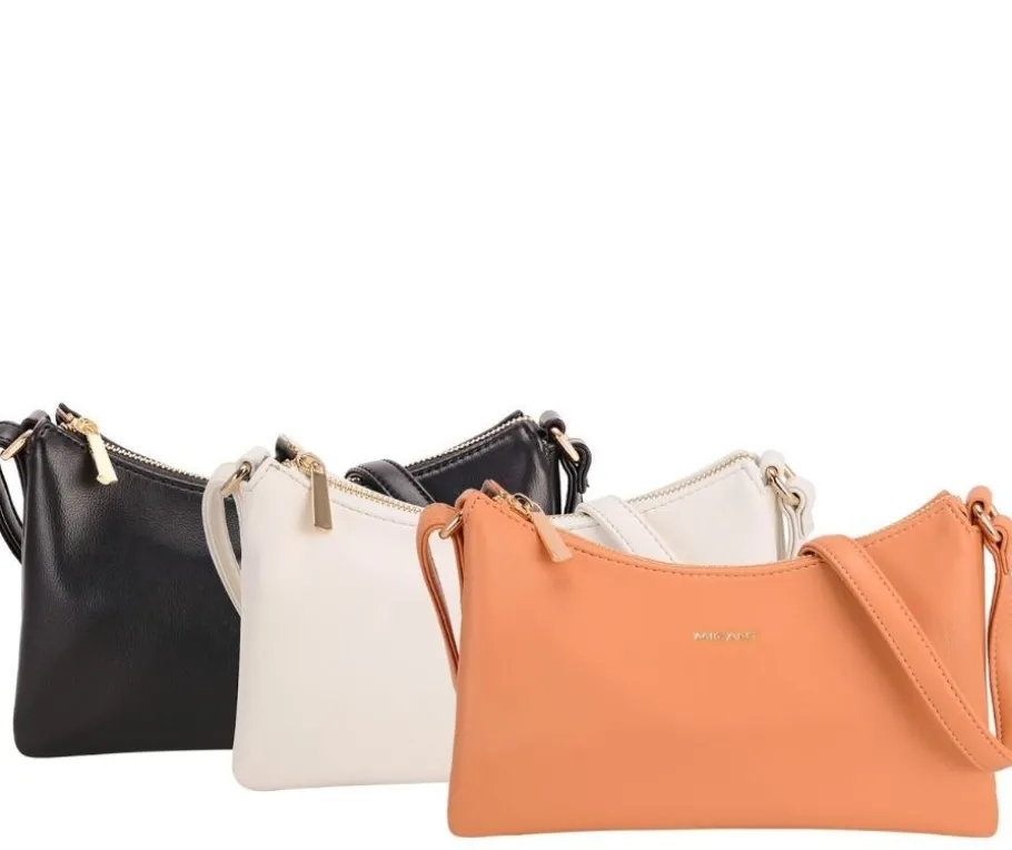 Tästä Migant olkalaukusta löytyy myös herkullinen väri aprikoosi perinteisten luonnonvalkoisen ja mustan lisäksi. Laukun pintamateriaali on miellyttävän pehmeä. Haitari pohja laukussa mahdollistaa myös isomman tavaran kuljetuksen nätisti olalla.