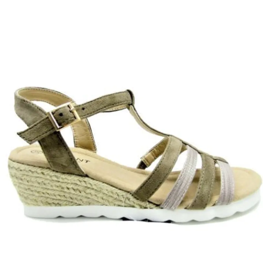 Luonnollisen kauniiden Migant kiilapohjasandaalien päällisessä on nilkassa solkikiinnitys. Kiilakantaa koristaa palmikoitu juuttinaru. Sandaalin paksu kimmoisa pohja näyttävän valkoinen. Sisäpohja pehmustettu. Erinomainen jalkine arkeen ja juhlaan!