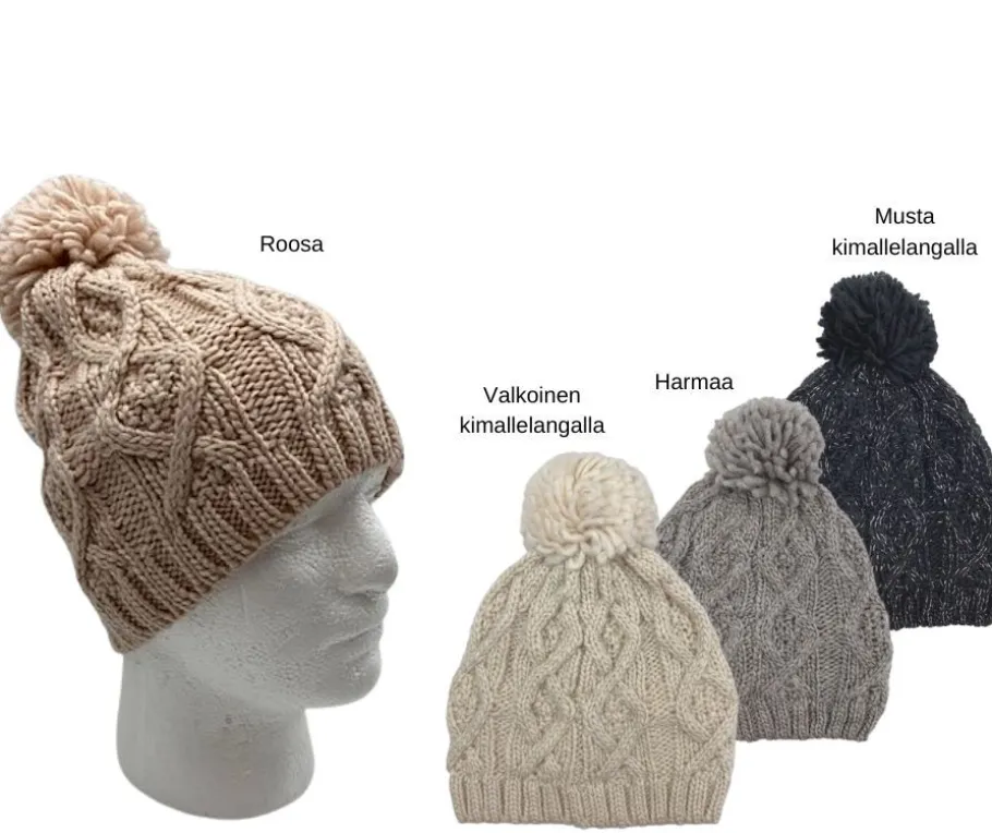 - Väri musta sisältää hieman kimallelankaa, roosa, valkoinen sisältää hieman kimallelankaa ja harmaa.