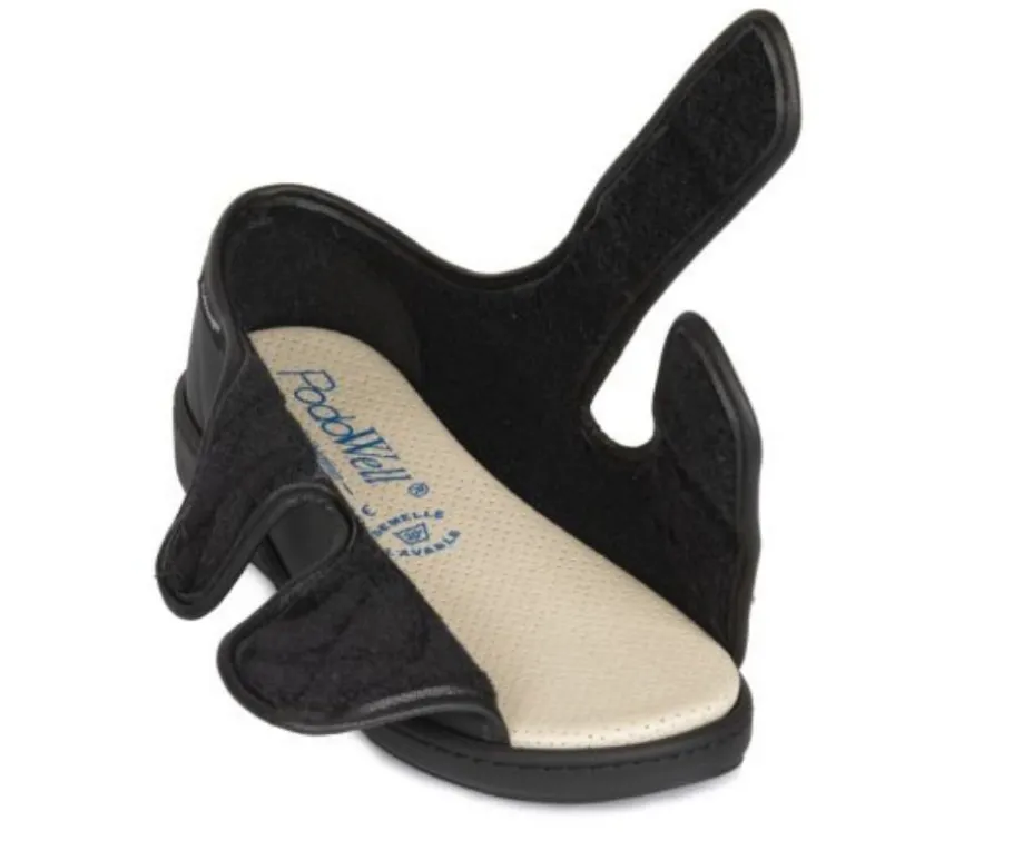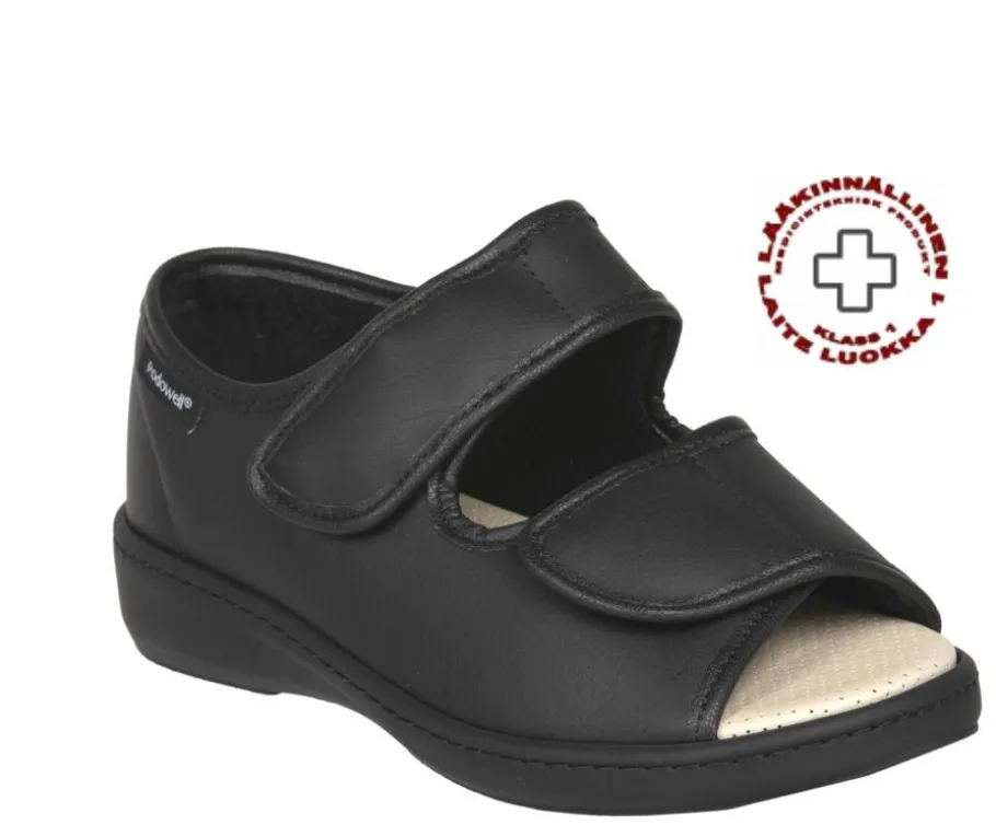 Erittäin leveälestiset jalkineet tarrakiinnityksellä! Konepestävät, sopivat sisä- ja ulkokäyttöön! Irrotettavat pohjalliset voidaan korvata ortoosilla.