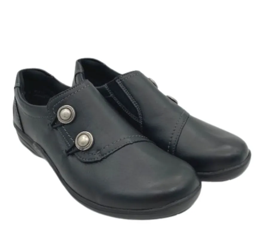Sisäsyrjällä joustovenyke ja koristenappien ympärillä olevat joustonauhat tekevät kengistä helpot pukea jalkaan. Normaali mitoitus takaa hyvän istuvuuden useimmille jalkatyypeille.