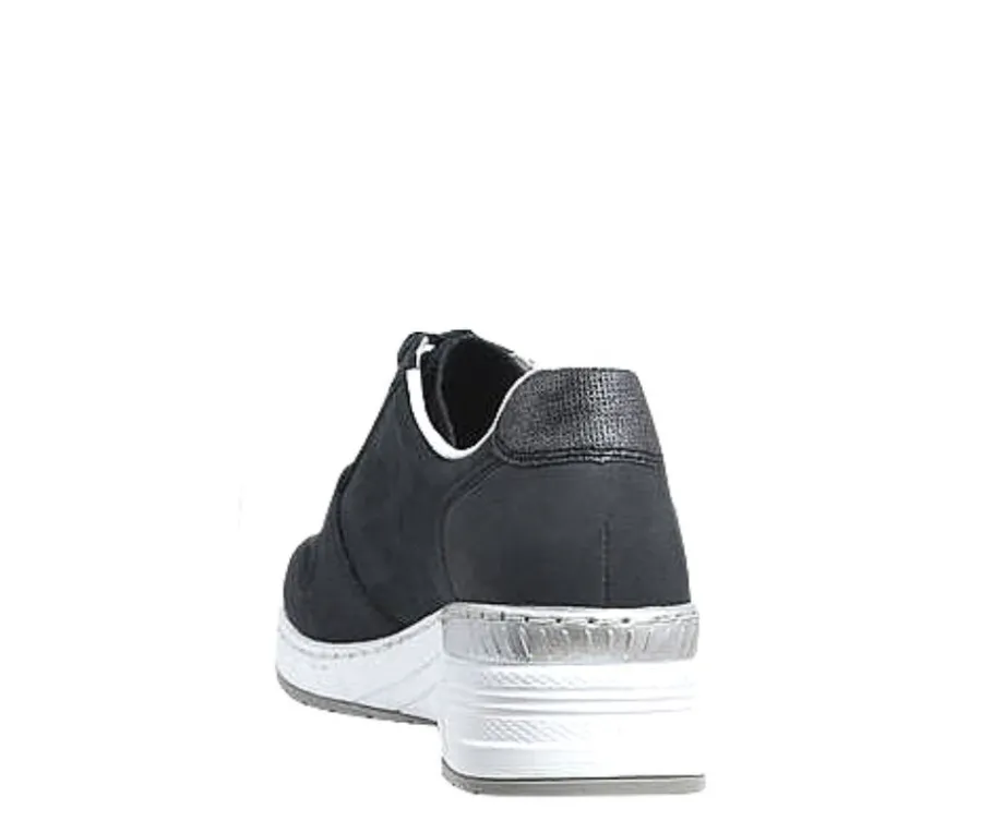 Tummansiniset Rieker kävelykengät tukevalla kiilapohjalla! Rieker Antistress-pohja vaimentaa iskuja ja on kevyt rakenteinen tuoden kenkiin käyttömukavuutta. Vetoketju nopeuttaa kengän jalkaan laittamista.