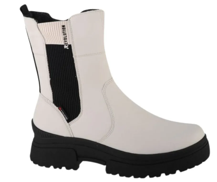 Rieker Revolution valkoiset talvinilkkuri saapikkaat yhdistävät tyylin, mukavuuden ja suorituskyvyn ainutlaatuisella tavalla.