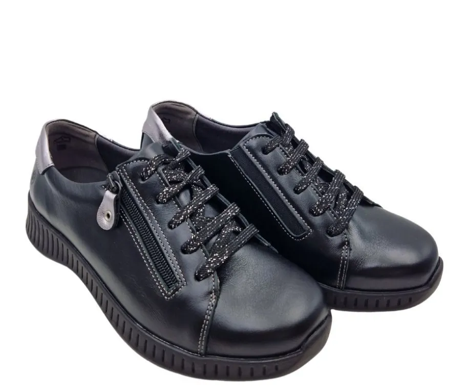 Suaven tilavat Geneve-kävelykengät on valmistettu aidosta ja laadukkaasta nahasta, mikä takaa niiden kestävyyden ja tyylikkään ilmeen. Kengissä on edessä nauhakiinnitys, jonka avulla voit säätää kengän istuvuutta juuri jalkaasi sopivaksi. Lisäksi ulkosyrjällä oleva vetoketju helpottaa kengän pukemista ja riisumista.