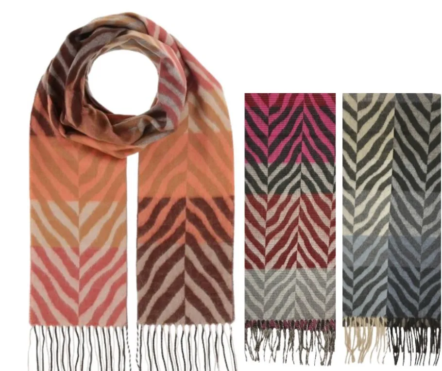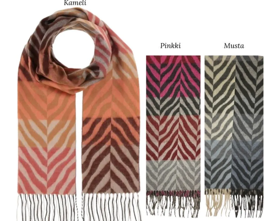 V.Fraas huivi on varustettu elegantilla seeprakuvioinnilla, joka antaa sille erottuvan ilmeen.