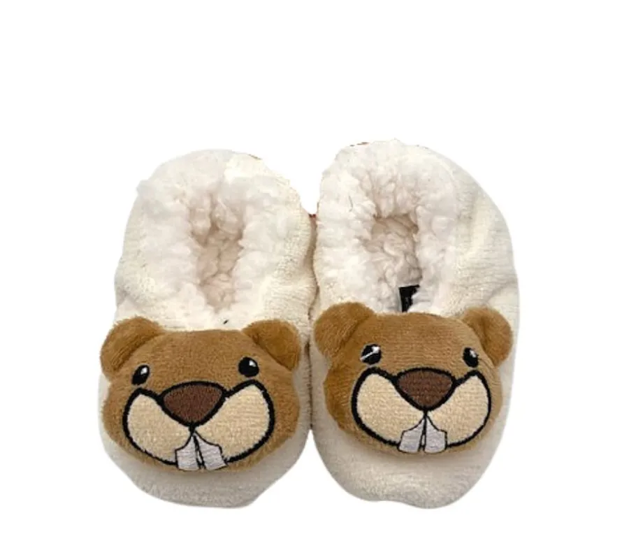 Lasten Antonio eläintossut liukuesteellä ja ihastuttavalla majava hahmolla. Pörröinen teddy sisäpuoli.