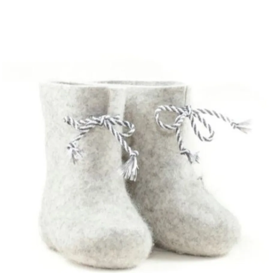 Huopikkaat on valmistettu 100% puhtaasta lampaanvillasta. Tämä luonnollinen materiaali tarjoaa lämmön ja mukavuuden lapsesi jaloille. Lahtiset vauvan huopikkaissa on tyylikäs harmaa väri, ja etuosassa on kaunis harmaavalkoraidallinen nauhasomiste.
