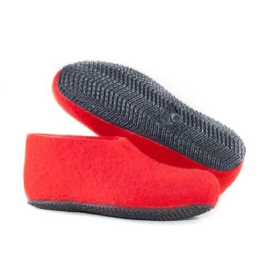 Kengät valmistetaan 100%:sta kotimaisesta villasta, mikä tukee paikallista villa-alaa ja vähentää hiilijalanjälkeä kuljetuksen osalta. Villa on pitkäikäinen ja erinomainen eristysmateriaali, mikä tekee näistä huopatossuista mukavat sekä lämpimät ja kestävät.