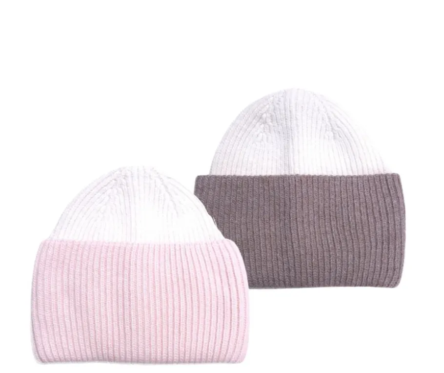 Pipossa on korkea käänne, joka suojaa korvia ja lisää lämpöä. Päältä muotoon neulottu rakenne antaa pipolle viimeistellyn ja kauniin istuvuuden. Kaksivärinen toteutus tuo asuun ripauksen tyyliä, ja vaihtoehtoina ovat luonnonvalkoinen vaalealla rosalla tai luonnonvalkoinen nutriansävyllä.