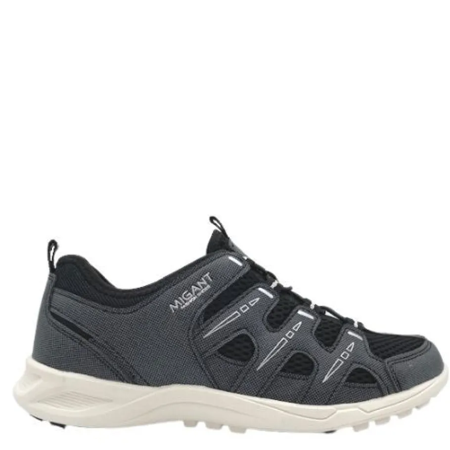 Kangaskengän päällä olevat jousto nauhat saa näppärästi kiristettyä pikalukolla, nopeutta kengän pukemista jalkaan. Musta harmaa kävelykengän väri on ajaton ja kaikkeen sopiva.