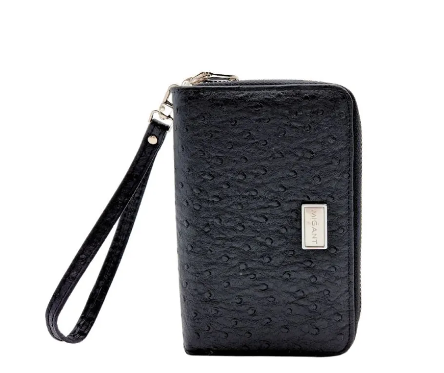 Lompakko suljetaan kahdella vetoketjulla, mikä lisää turvallisuutta ja pitää sisällön järjestyksessä. Mukana tuleva irrotettava rannelenkki tuo lisämukavuutta kantamiseen. Kompaktit mitat tekevät lompakosta tilavan, mutta helposti mukana kuljetettavan.