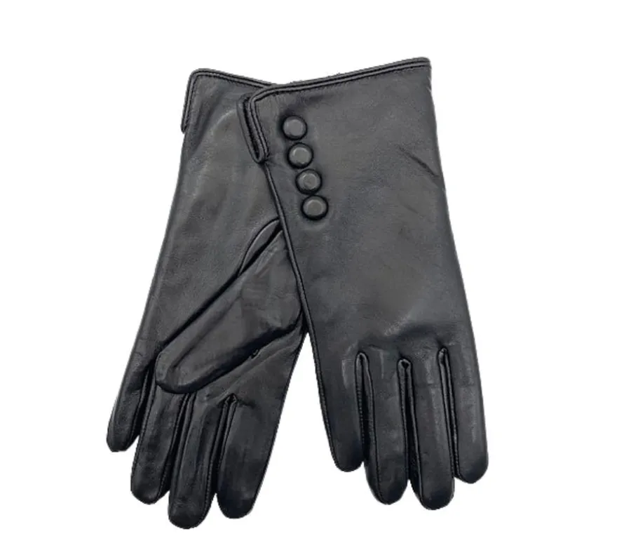 Mustat nahkahanskat nappikoristeilla! Lämmin paksu tekstiilivuori.