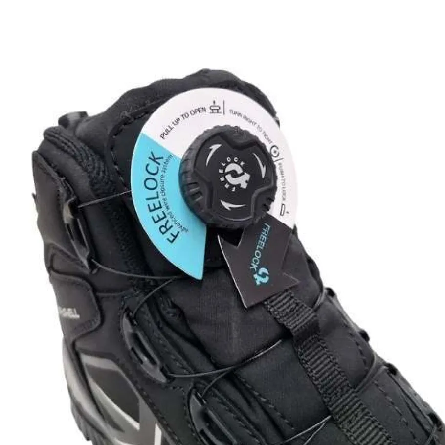 - Päällä Freelock-pikanauhoitus – Painamalla ja pyörittämällä saat näppärästi kiristettyä nauhat, ja lukkoa vetämällä nauhat on helppo ja nopea avata
