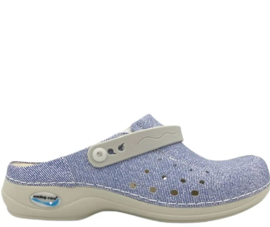 - Kengän päällinen aitoa nahkaa, väri farkku kuvioitu sininen.