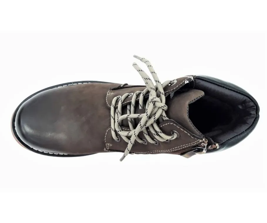 Nahkakengät pehmeällä vuorella! Pitävä & kuvioitu ulkopohja. Päällä olevan nauhoituksen avulla kengät on helppo säätää omaan jalkaan istuvaksi ja vetoketjukiinnityksellä kengät voi sujauttaa nopeasti jalkaan.