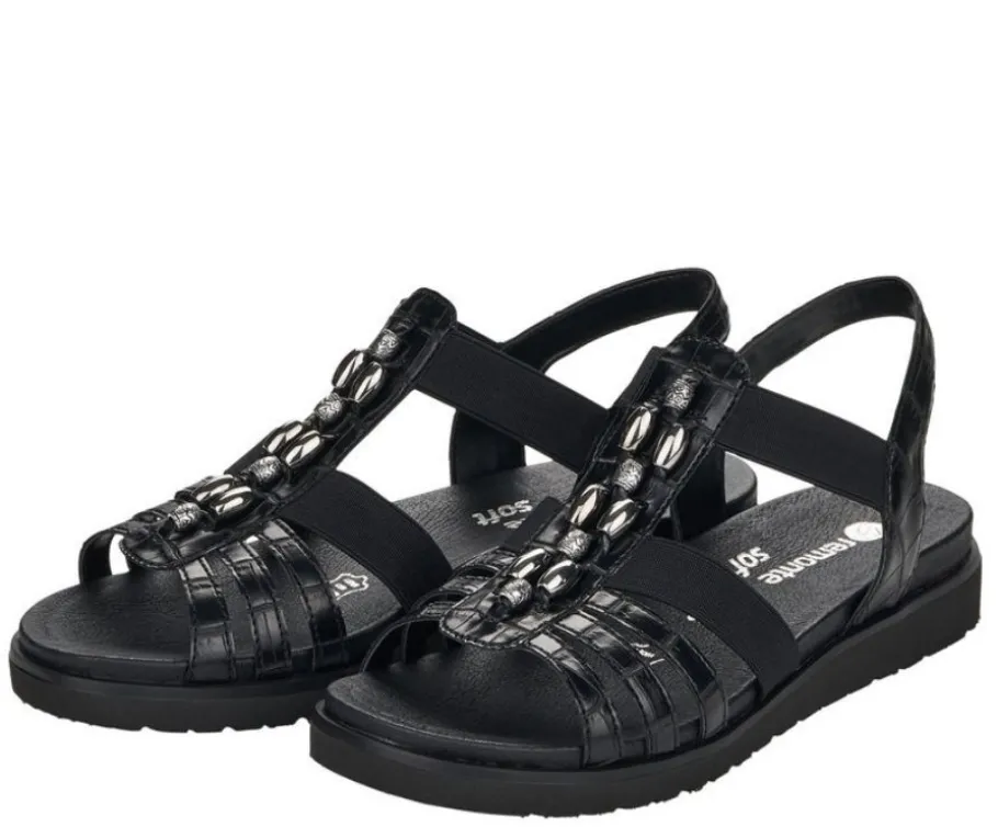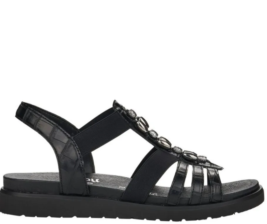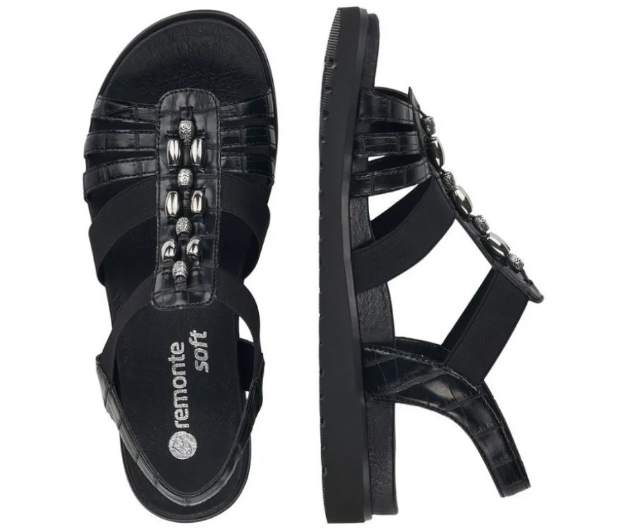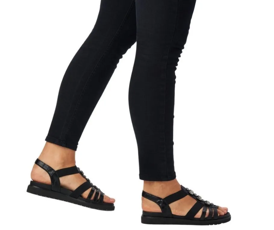 Naisten mustat Remonte-sandaalit joustovenykkeillä.
