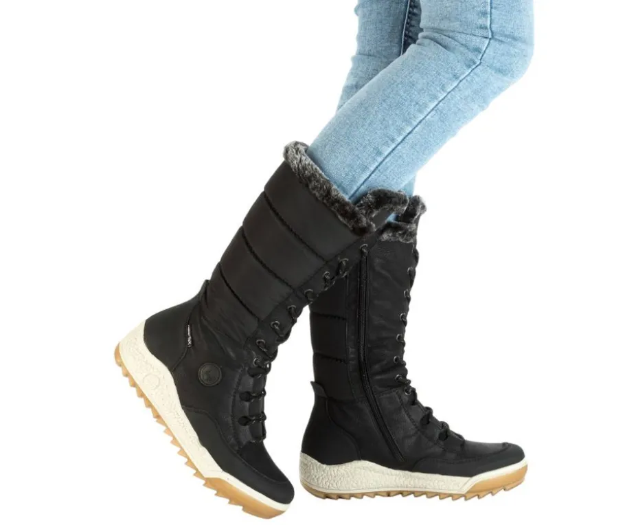 Kylmää eristävä ulkopohja pitää jalat suojattuina kylmältä alustalta, ja RiekerTex-kalvo tekee kengistä vettä hylkivät, joten voit luottaa siihen, että jalat pysyvät kuivina.