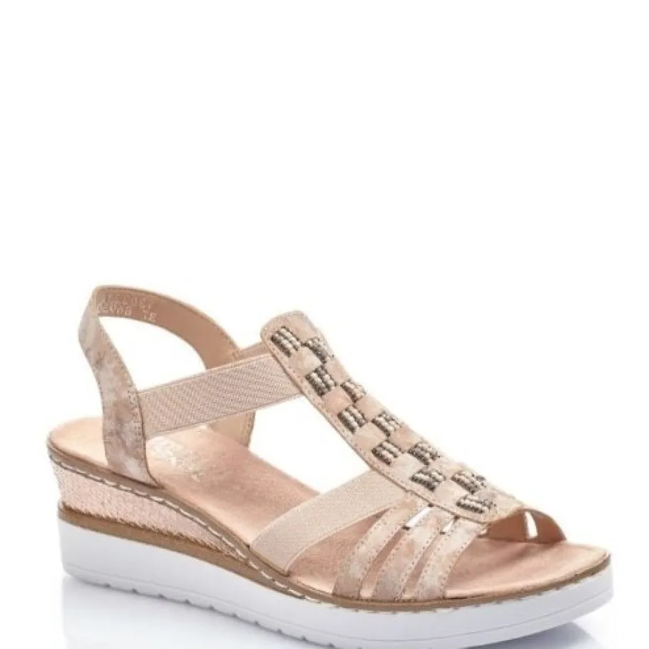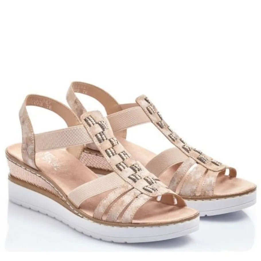 Kauniit Rieker-sandaalit kiilapohjalla! Päällä helmikoristeet.