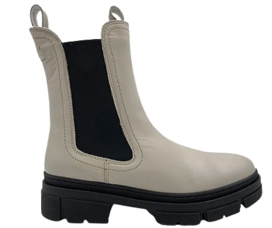 Harmaat Tamaris chelsea saapikkaat. Aitoa nahkaa olevat kengät ovat tyylikkäät ja mukavat jalassa. Sivuilla joustovenykkeet ja varressa sormilenkit kengän jalkaan pukemisen helpottamiseksi.