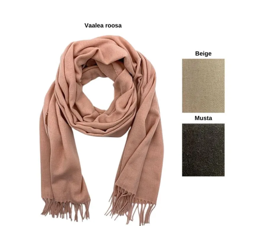 Perinteisen mallinen kaulahuivi on pehmeä ja tuntuu ihanalta ihoa vasten. Kolme perusväriä saatavilla.