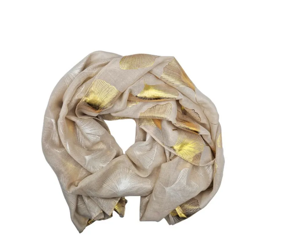 Veniz huivi on tyylikäs ja monikäyttöinen asuste, joka sopii niin arkeen, juhlaan kuin vapaa-aikaankin. Sen beige sävy ja hienostuneet kullanväriset kuviot, jotka vaihtuvat toisella puolella vaaleanhopeiksi, tekevät siitä näyttävän mutta hillityn valinnan. Huivin koko on noin 90 cm x 180 cm, ja sen kevyt, läpikuultava materiaali tuo ilmavuutta asukokonaisuuteen.
